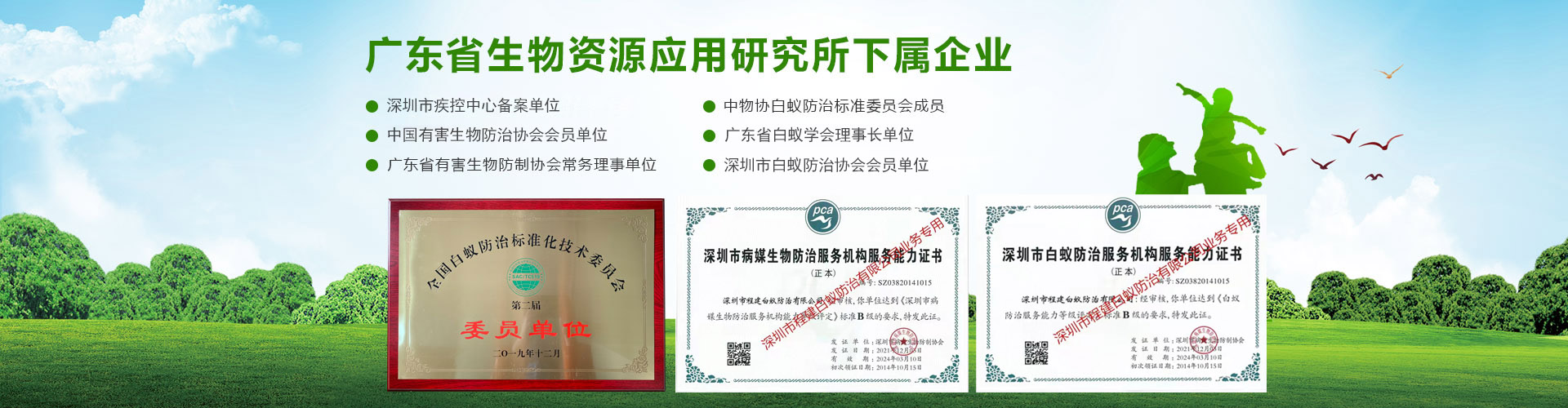 深圳市程建白蟻防治中心有限公司(深圳市白蟻防治中心、深圳市殺白蟻公司、滅白蟻公司、治白蟻公司、除白蟻公司、防白蟻公司、深圳市消殺公司、深圳市殺蟲(chóng)公司)、于二00二年十一月成立。是經(jīng)深圳市政府有關(guān)部門(mén)批準(zhǔn),市工商行政管理局注冊(cè)登記的法人企業(yè),深圳市蟲(chóng)鼠防治協(xié)會(huì)(PCO)成員單位,持有政府部門(mén)頒發(fā)“白蟻防治服務(wù)機(jī)構(gòu)服務(wù)能力證書(shū)B(niǎo)級(jí)”、“有害生物防制服務(wù)機(jī)構(gòu)服務(wù)能力證書(shū)B(niǎo)級(jí)”雙資質(zhì)證書(shū)的有害生物防治單位。公司主要服務(wù)政府、事業(yè)、企業(yè)、工廠(chǎng)、賓館、園林、小區(qū)、大廈等單位的白蟻防治、有害生物防制施工的專(zhuān)業(yè)機(jī)構(gòu)。技術(shù)力量雄厚,擁有各層次專(zhuān)業(yè)技術(shù)人員三十多名。